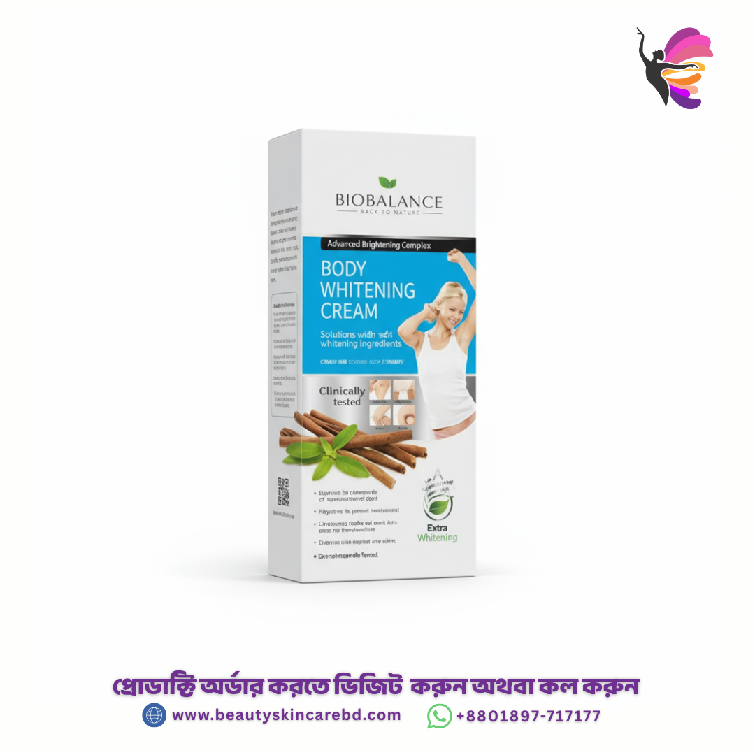 এই বডি হোয়াইটেনিং ক্রিমটি শরীরের ত্বকের বিবর্ণতা ও কালো দাগ কমানোর জন্য ডিজাইন করা হয়েছে। এটি ঘাড়, বগল, কনুই, হাঁটু, এবং উরুর ভেতরের মতো অংশে কার্যকর। ক্রিমের অ্যাডভান্সড ব্রাইটেনিং কমপ্লেক্স ত্বকের টোনকে সমান করতে, কালো দাগ কমাতে এবং ত্বকের উজ্জ্বলতা বাড়াতে সাহায্য করে। এটি এমন একটি সমাধান যা ত্বককে এক্সট্রা হোয়াইটেনিং সুবিধা প্রদান করে, যাতে ত্বক আরও উজ্জ্বল ও সতেজ দেখায়।