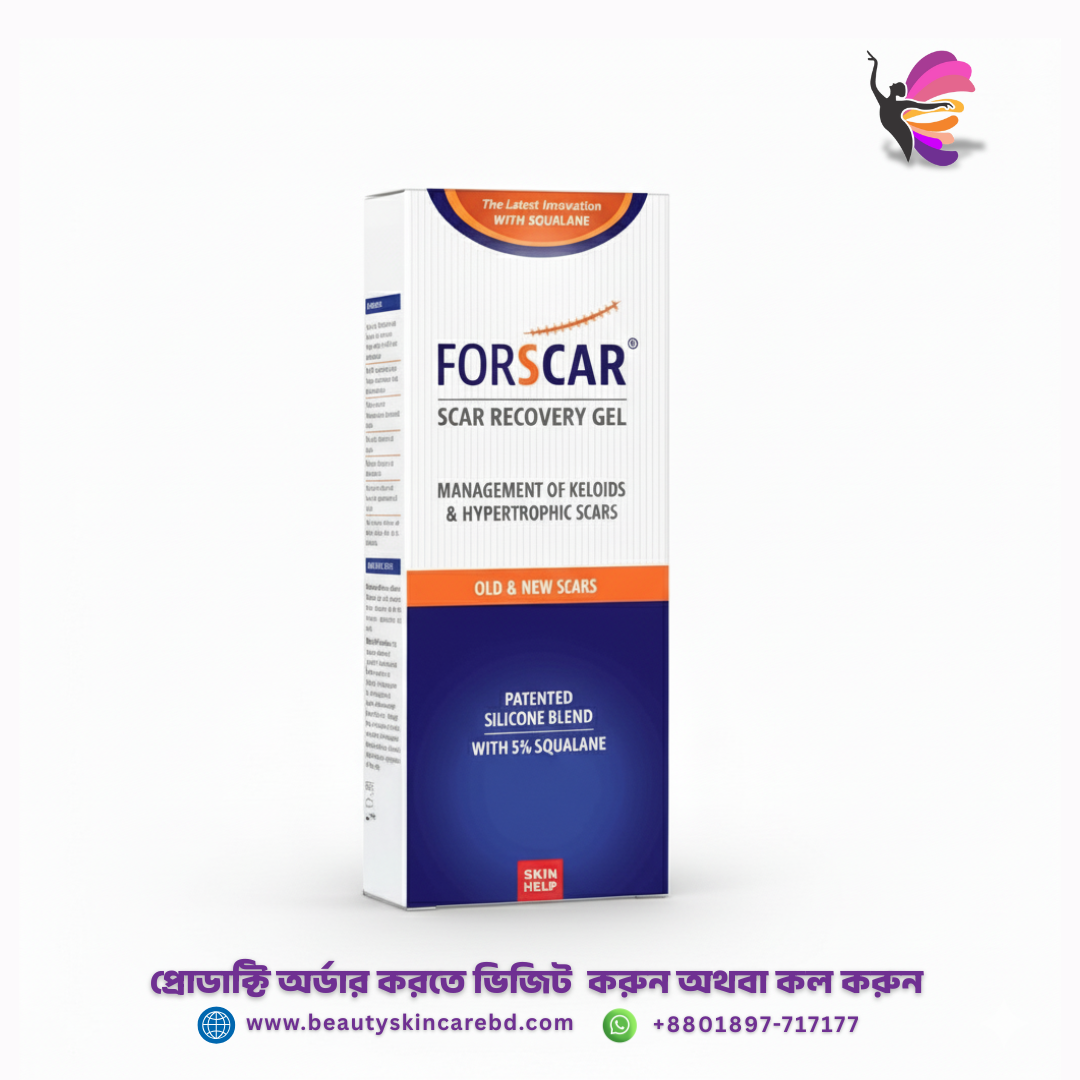 Forscar Scar Recovery Gel একটি উন্নতমানের জেল, যা পুরোনো এবং নতুন উভয় ধরনের দাগ নিরাময়ের জন্য তৈরি। এটি পেটেন্টেড সিলিকন প্রযুক্তি এবং ৫% অ্যান্টিঅক্সিডেন্ট অলিভ অয়েল স্কোয়ালেন দ্বারা তৈরি। সিলিকন প্রযুক্তি দাগের স্থানটিকে মসৃণ, নরম এবং সমতল করতে সাহায্য করে, একই সাথে এটি চুলকানি ও অস্বস্তি কমায়। এটি ত্বকের জলীয় বাষ্পের ক্ষতি রোধ করে একটি সুরক্ষামূলক বাধা তৈরি করে, যা দাগকে ব্যাকটেরিয়া এবং অন্যান্য বাহ্যিক আক্রমণ থেকে রক্ষা করে। এটি হাইপারট্রফিক এবং কেলয়েড স্কার সহ সার্জারি, আঘাত, পোড়া, সি-সেকশন এবং ব্রণের দাগ নিরাময়ে কার্যকর।